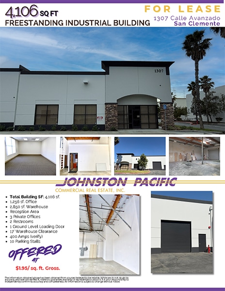 Total: 4,106 sf | 1,256 SF Office Area | 2,850 Warehouse